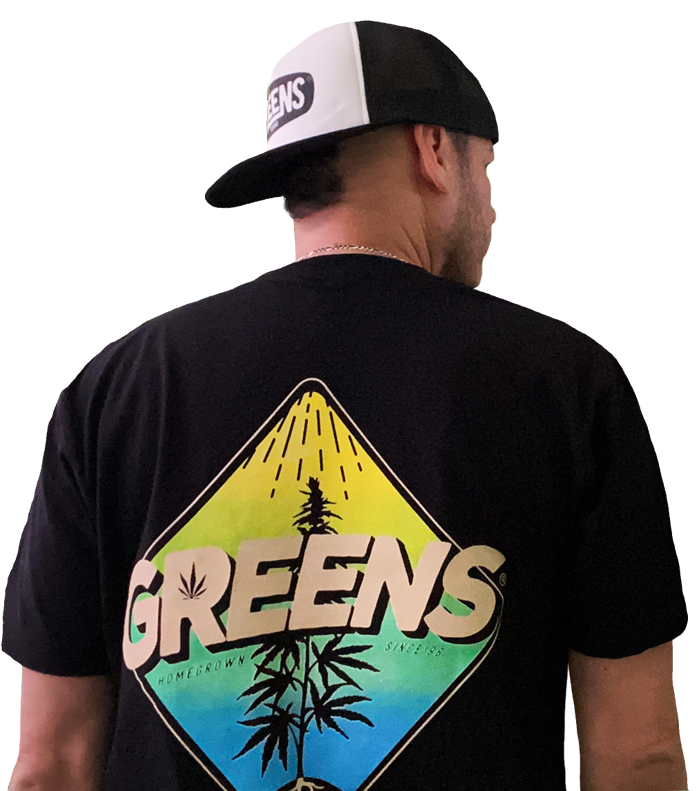 $30.00This Premium Black t-shirt features “The Vapors design” in two color gradience screen print on the front chest and one color logo print on the back. You can feel the sweet effects of the greens exuding from this summer drop. Get some!